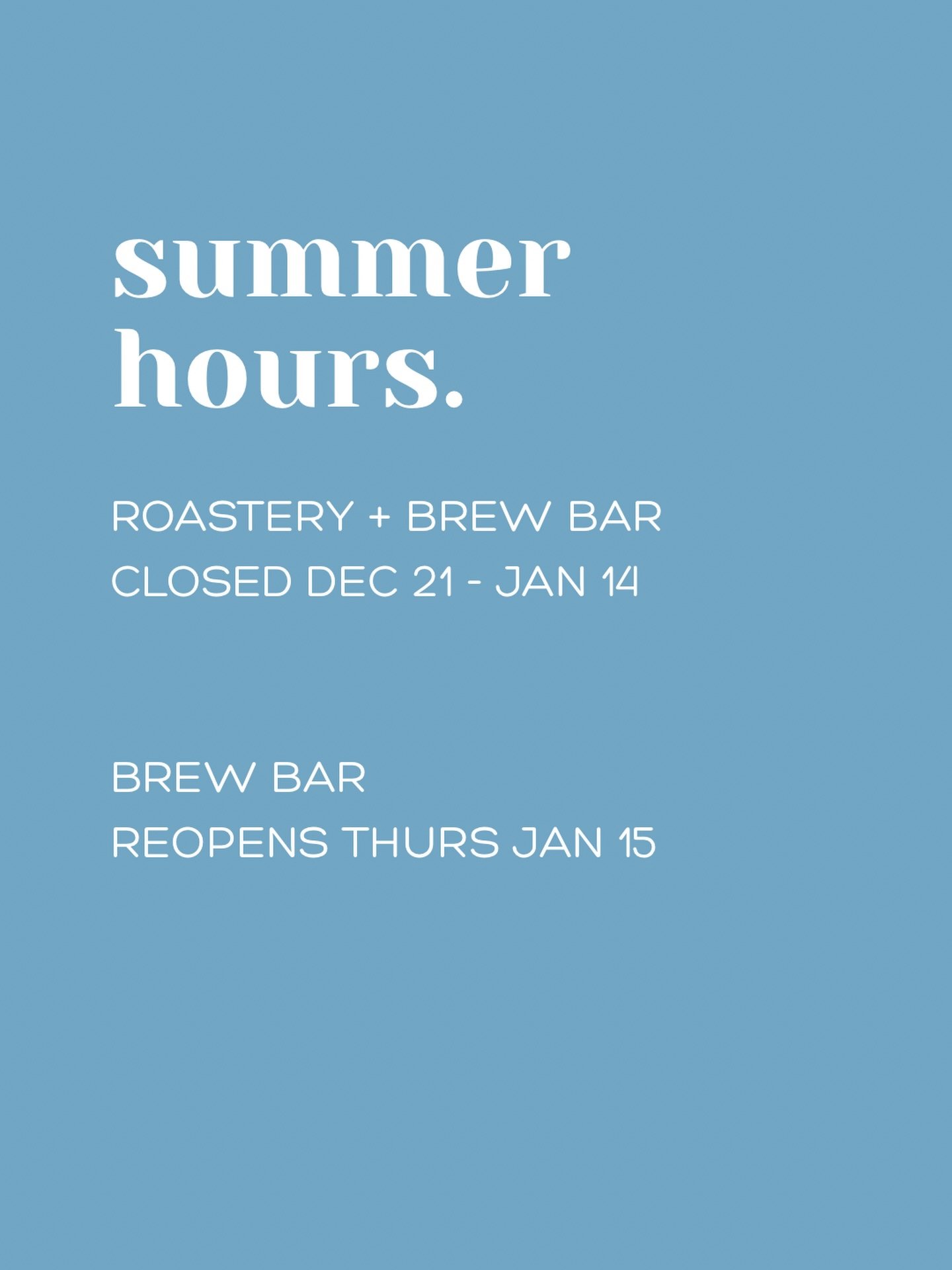 CLOSED FOR SUMMER BREAK DEC 21 - JAN 14