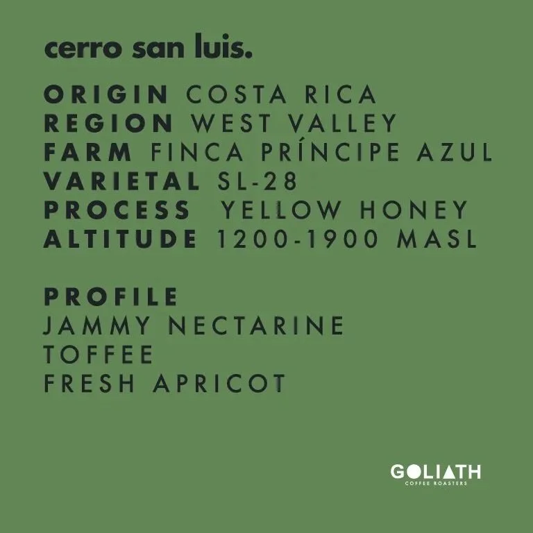Experience the vibrant character of Cerro San Luis Micromill: handpicked cherries from Costa Rica’s West Valley, processed at the family’s home mill.